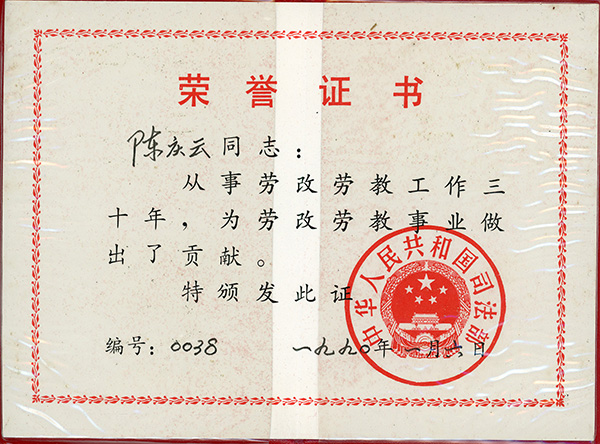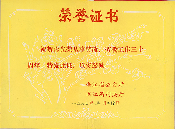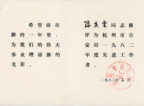 1979年7月,陈庆云同志被分配到杭州市公安局第三劳教大队(现为杭州市第二劳动教养所)工作。1979年8月,他被借调回杭州市公司局刑侦大队技术科做指纹鉴定和指纹档案工作。一年后,又回到第三劳动大队(现为杭州市第二劳动教养所)做内勤工作,直至1990年2月退休。多舛的人生,给了陈庆云同志更多的是隐忍和历练。