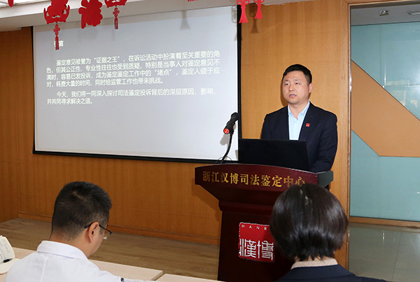 11月26日下午,浙江汉博司法鉴定中心举办《汉博讲堂》专题讲座,中心文书鉴定室副主任魏显峰以《投诉产生的原因、影响及对策》为题,带来专业深度分享。讲座由中心技术负责人罗琼主持,全体鉴定人及助理参与学习。