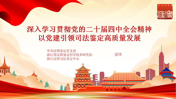 会议伊始,《汉博讲堂》新一期课程率先开讲,梁锋书记以《深入学习贯彻党的二十届四中全会精神,以党建引领司法鉴定事业高质量发展》为题讲授党课。她深入解读了全会精神的核心要义与指导意义,要求全体人员立足本职岗位,强化责任担当,争做政治坚定的“ 明白人”、业务发展的“带头人”、清正廉洁的“干净人”、服务群众的“贴心人”。同时强调,要持续深化党建与业务深度融合,充分发挥党组织战斗堡垒和党员先锋模范作用,推动中心司法鉴定工作走在前列、作出示范,持续擦亮党建引领发展的鲜明底色。